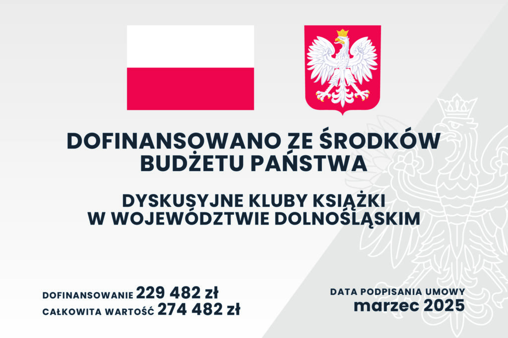 Miło nam poinformować, że Dolnośląska Biblioteka Publiczna im. Tadeusza Mikulskiego we Wrocławiu otrzymała dofinansowanie ze środków Instytutu Książki pochodzących z dotacji celowej Ministerstwa Kultury i Dziedzictwa Narodowego w kwocie 229 482 zł na koordynację działalności Dyskusyjnych Klubów Książki w województwie dolnośląskim w 2025 roku. Program funkcjonuje w polskich bibliotekach publicznych od 2007 i powstał z potrzeby stworzenia miejsca, w którym swobodnie będzie można rozmawiać o przeczytanych książkach nie będąc znawcą literatury czy krytykiem.
