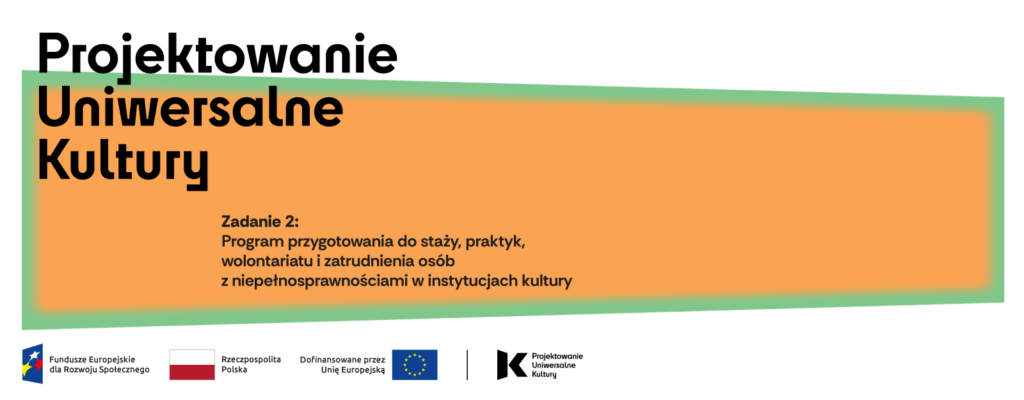 Zadanie 2 to program przygotowania do staży, praktyk, wolontariatu i zatrudnienia osób z niepełnosprawnościami w instytucji kultury. Jego celem jest wzmocnienie kompetencyjne instytucji kultury tak, aby potrafiły włączać osoby z niepełnosprawnościami w swoje działania jako pracowników, współpracowników czy wolontariuszy – w kontekście realizowanych procedur, rozwiązań organizacyjnych, sposobu komunikacji.